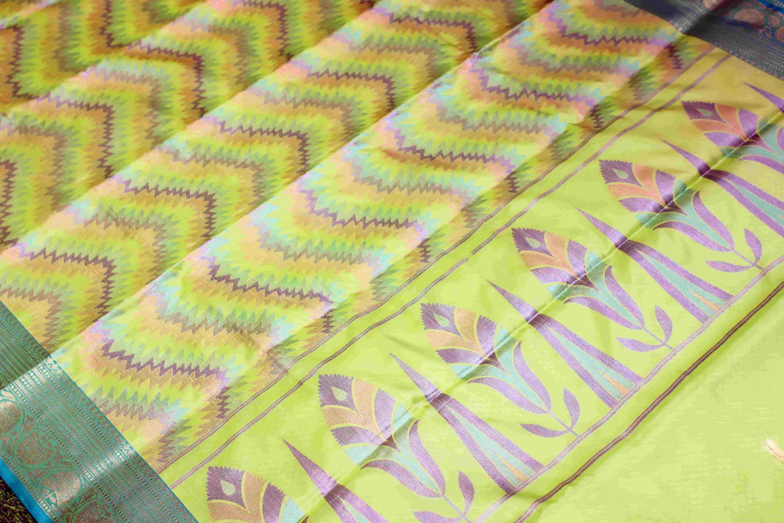 Yellow Color katan handloom Silk Saree